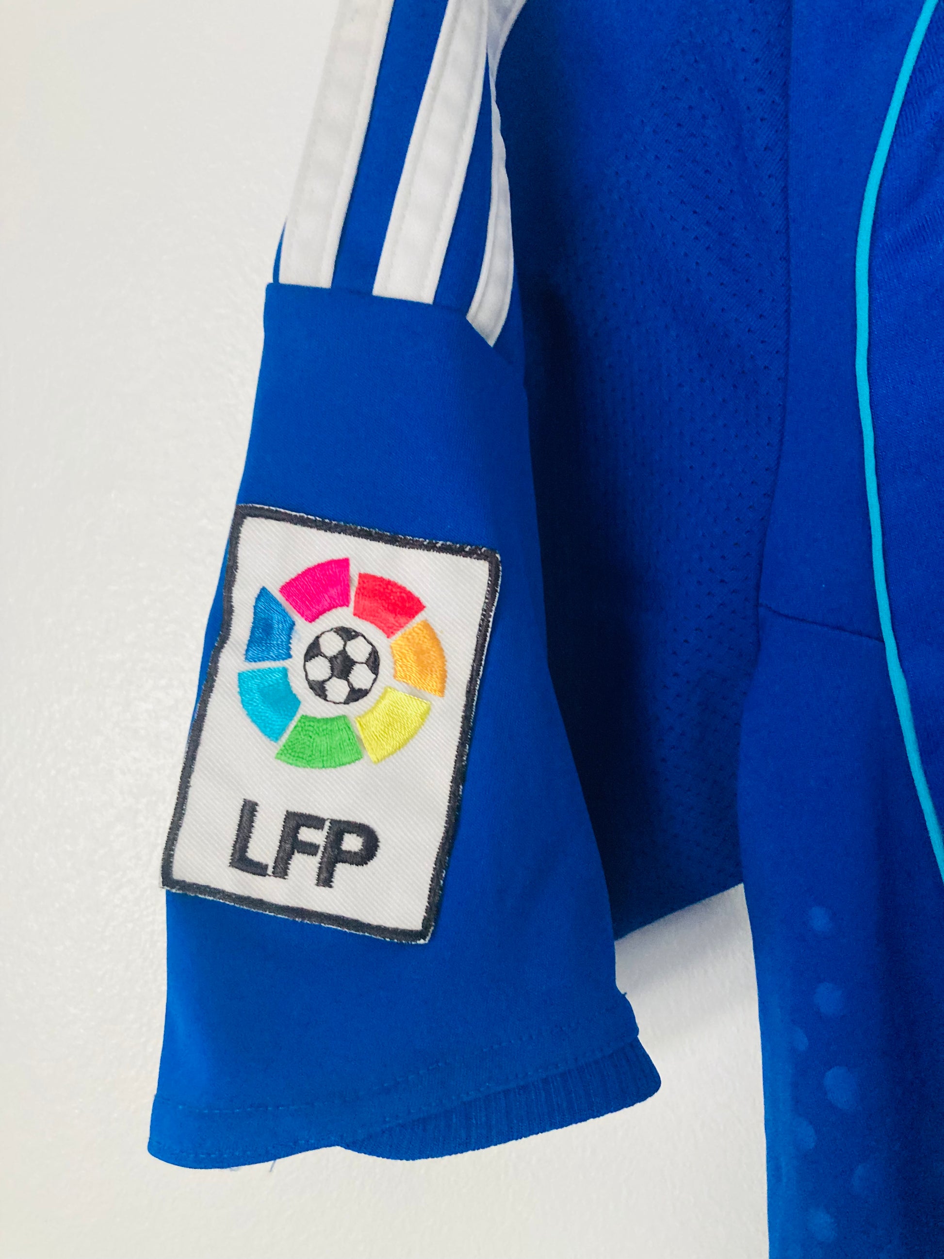 This shirt has seen some wear but is still in good condition. There may be some minor flaws such as light fading, small pulls, or faint stains, but these do not detract from the overall appearance or wearability of the shirt. A great choice for those looking to own a piece of football history at an accessible price.