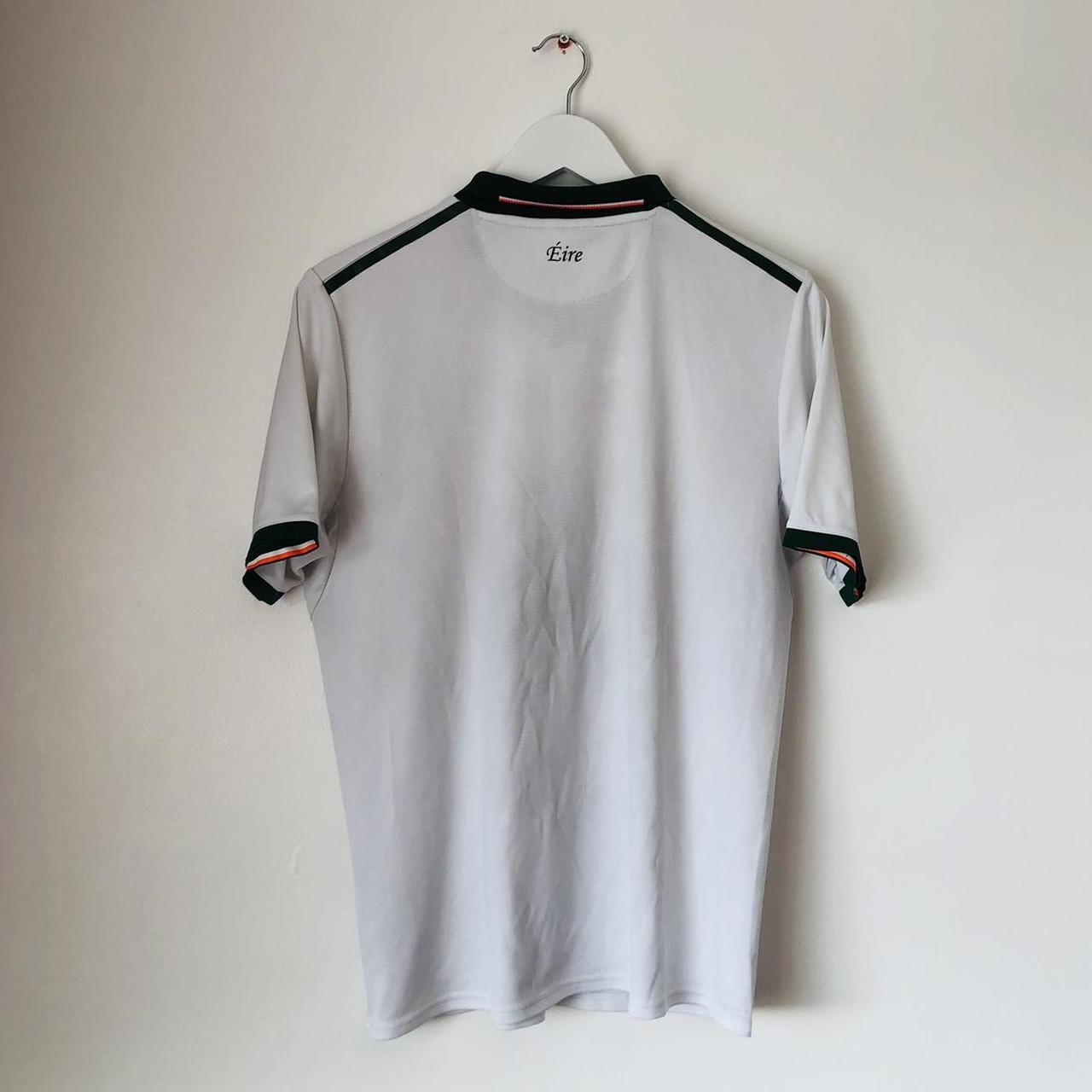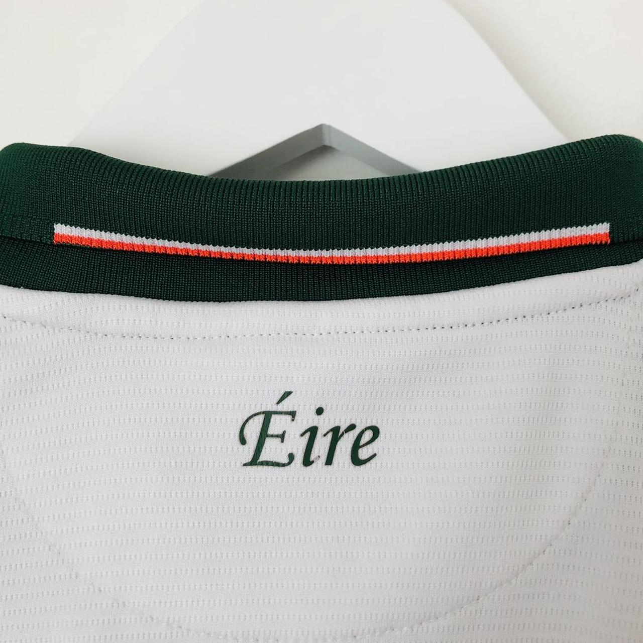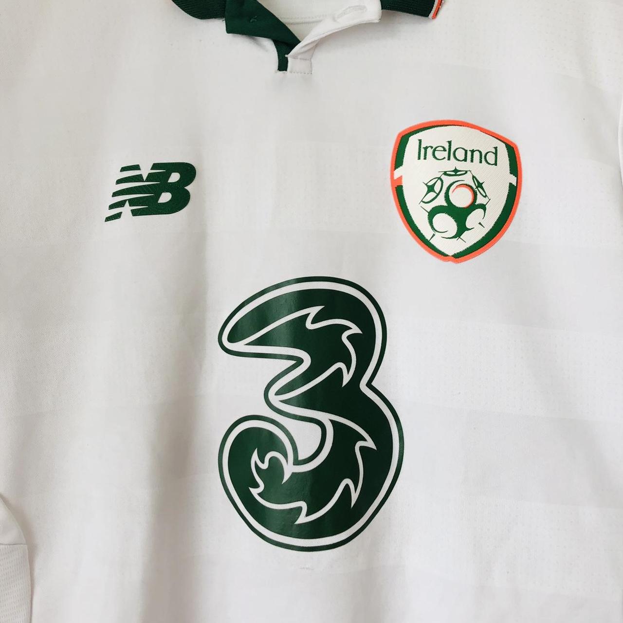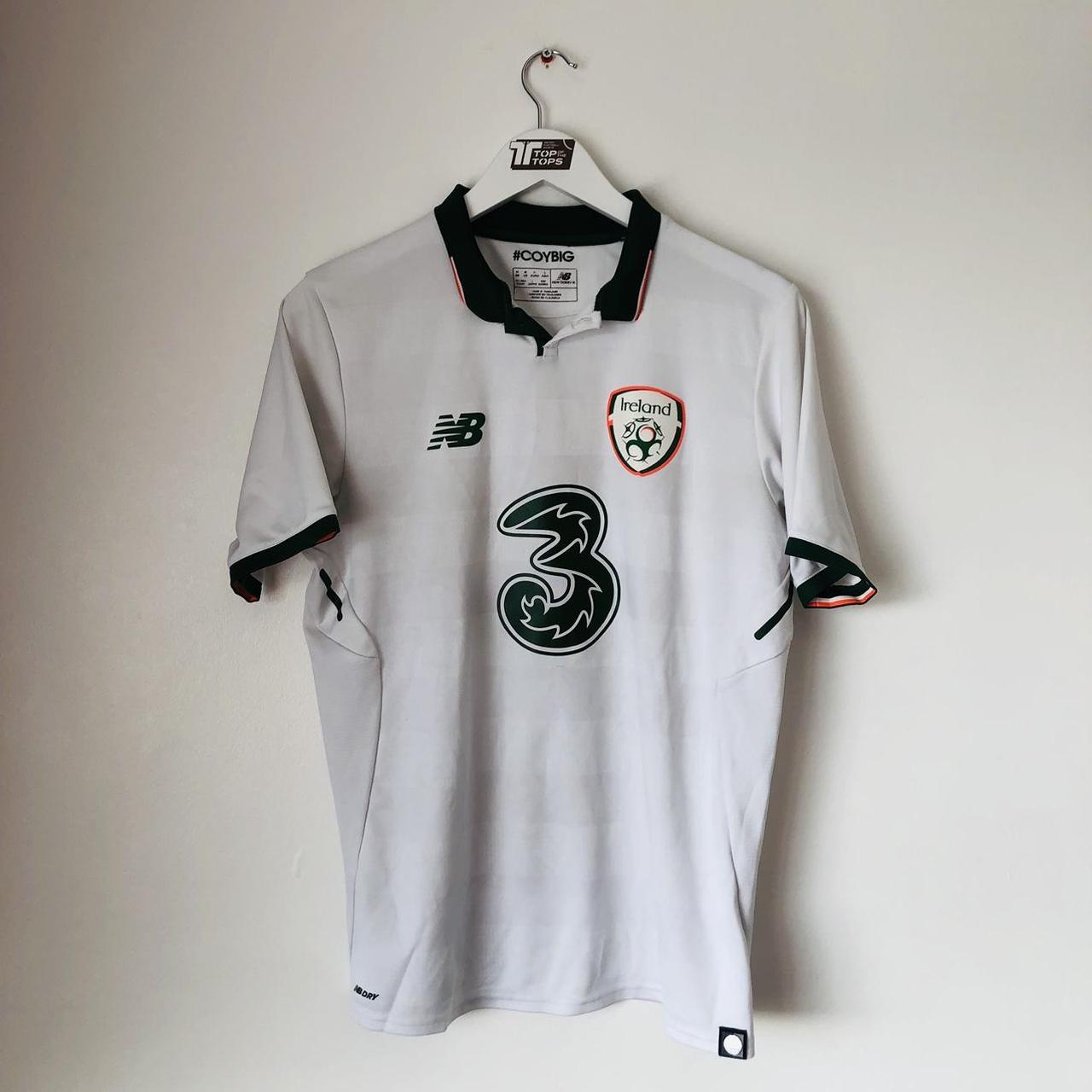 This Republic of Ireland away football shirt, released in 2017/18, is made by New Balance and measures 20.5" from chest pit to pit and 26.5" in length. It is an adult medium size and in very good condition with a few minor bobbles. The product code is MT730555 and all authenticity labels are present inside the shirt.