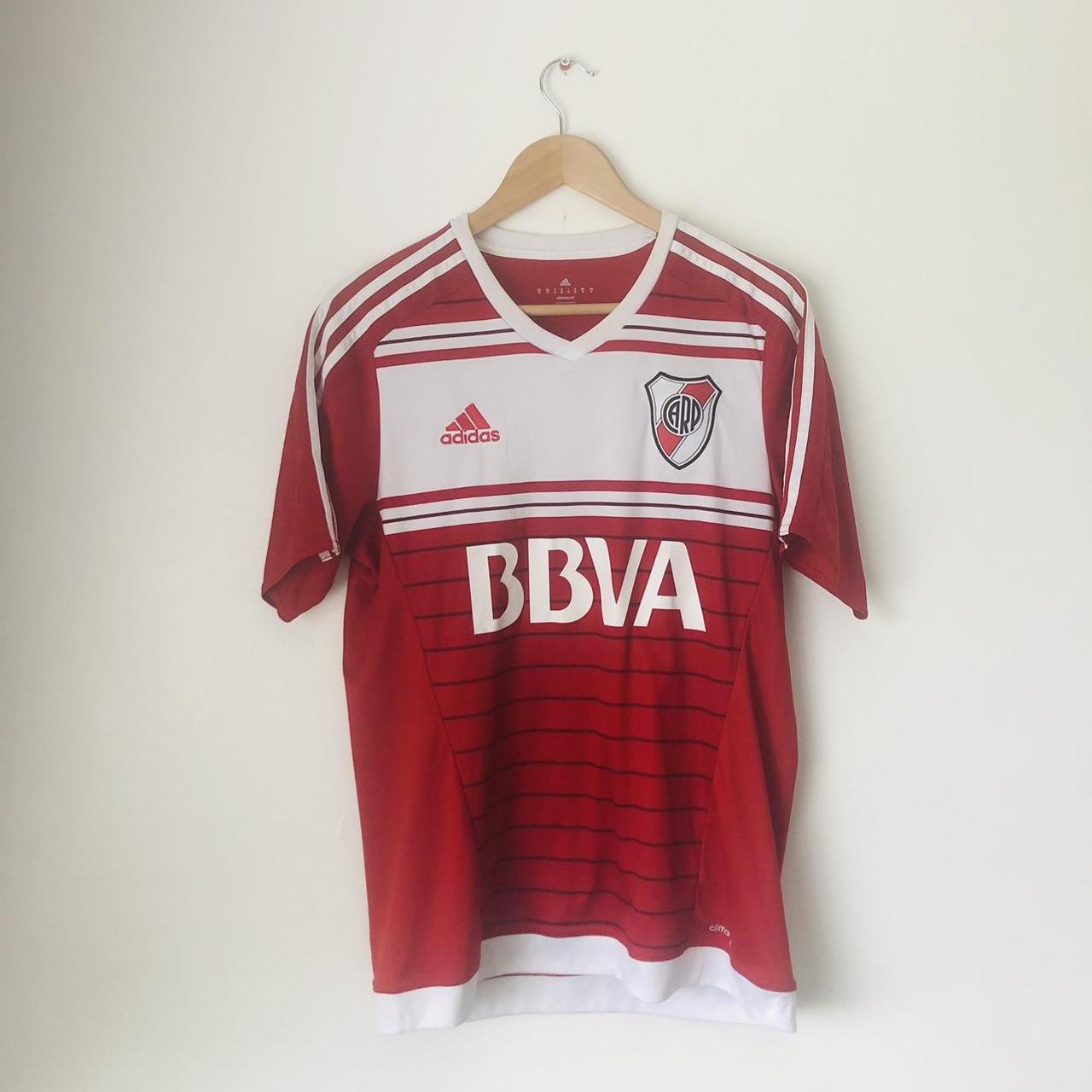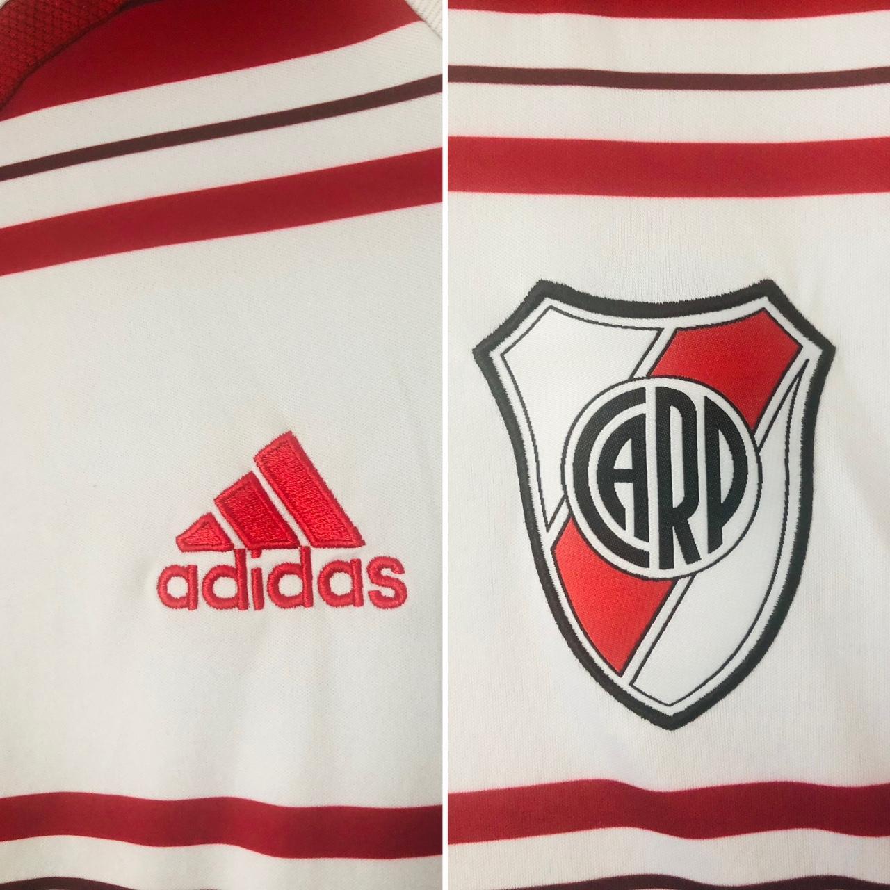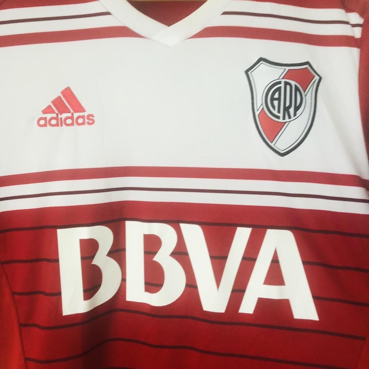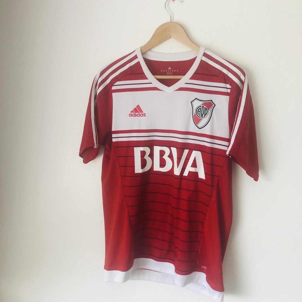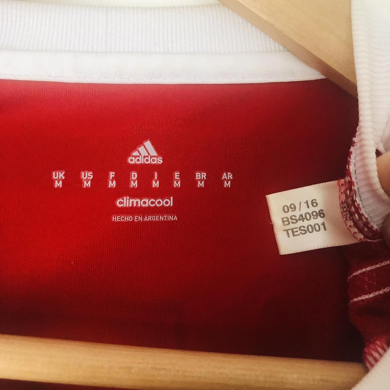 Embrace the spirit of River Plate with this 2016/17 Red & White Away Football Shirt (M)! Featuring a vibrant design and the iconic Adidas brand, this Medium-sized shirt measures 20" pit to pit and 28" in length. Show your passion for the team with this authentic piece that is in very good condition (product code: BS4096). Don't miss out on this opportunity to be a part of the action!