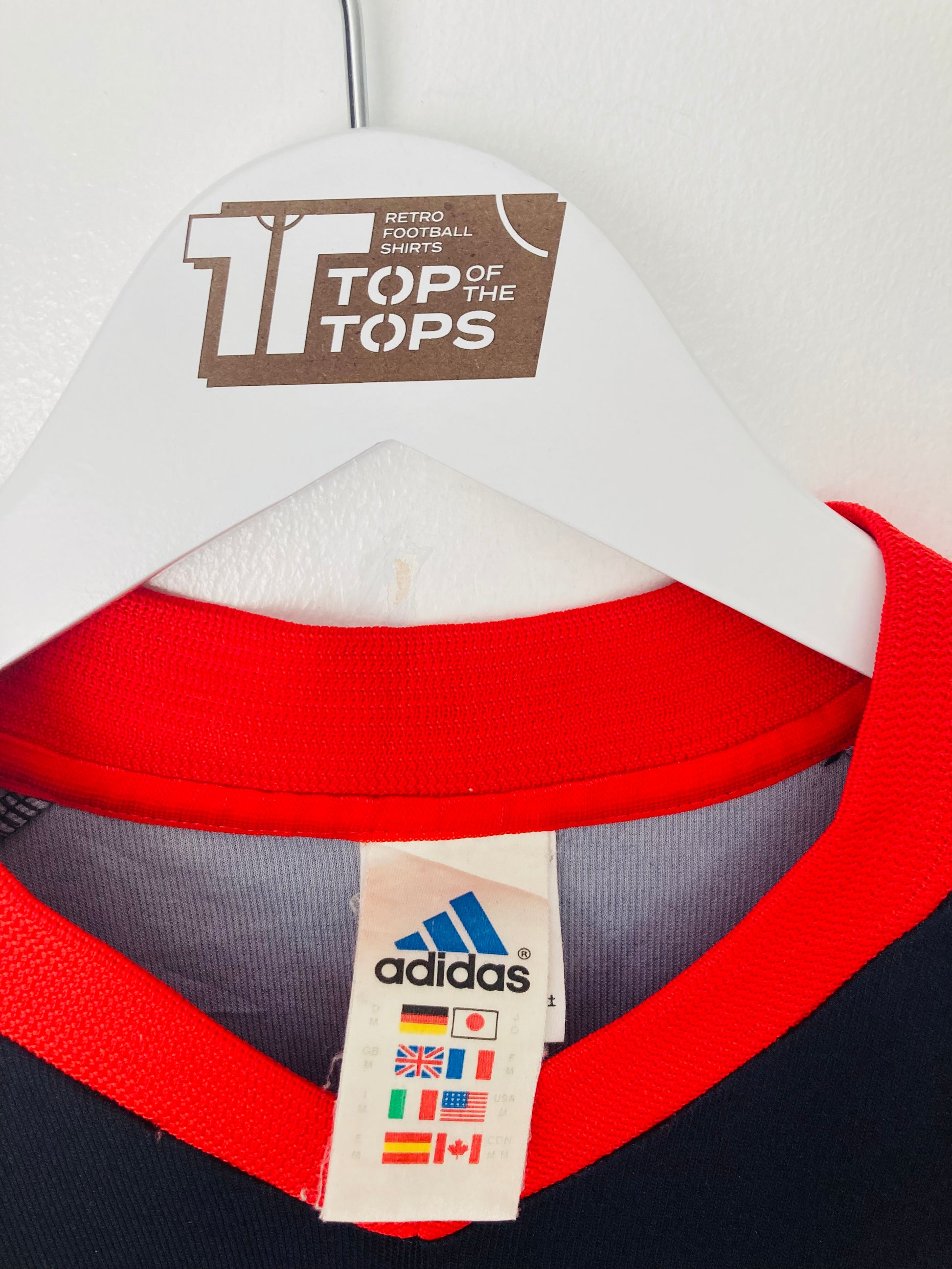 This shirt has seen some wear but is still in good condition. There may be some minor flaws such as light fading, small pulls, or faint stains, but these do not detract from the overall appearance or wearability of the shirt. A great choice for those looking to own a piece of football history at an accessible price.