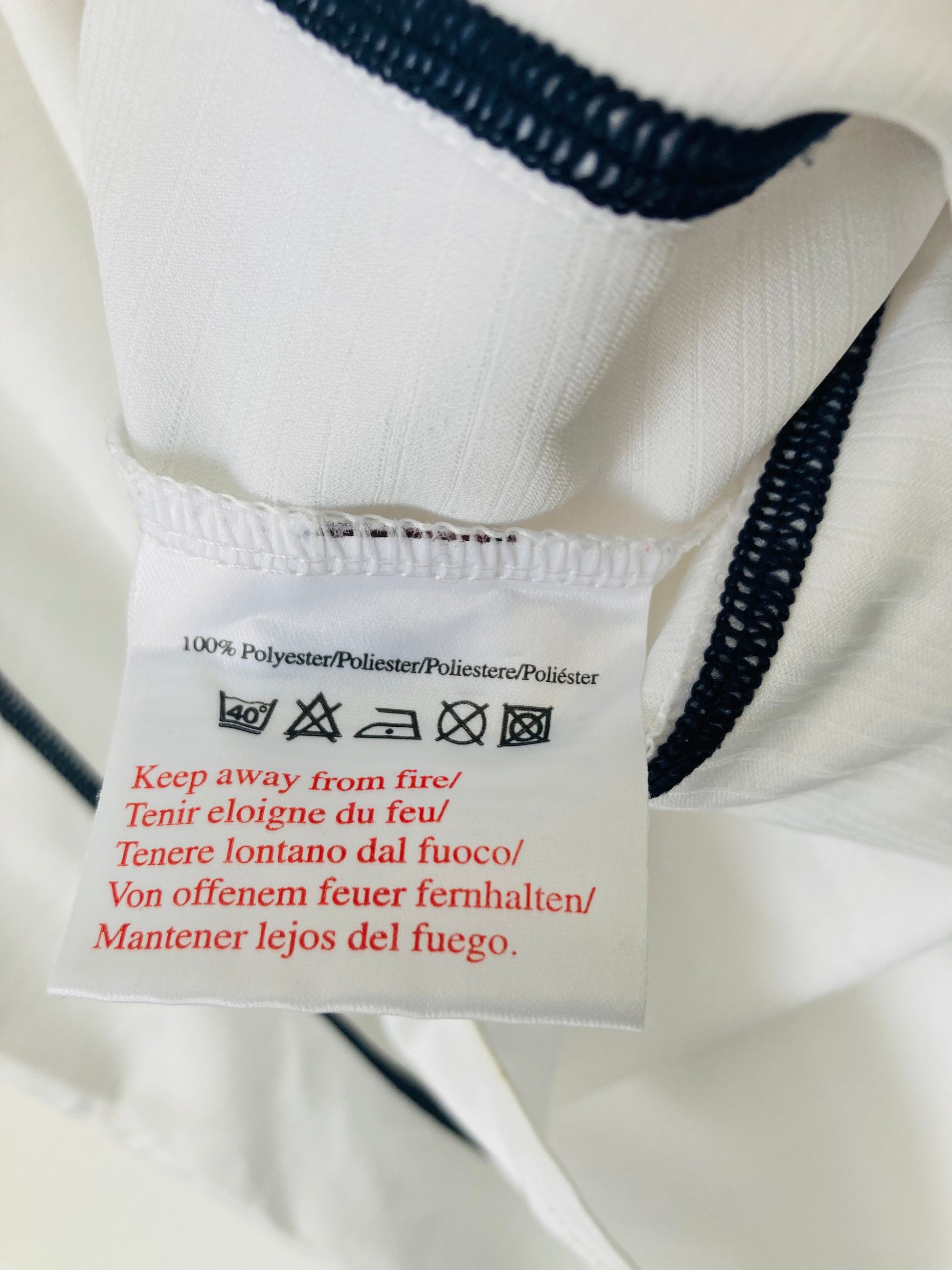 If ironing is necessary, turn the shirt inside out and use a cool setting. Never iron directly over printed areas or badges, as this can cause them to melt or peel.