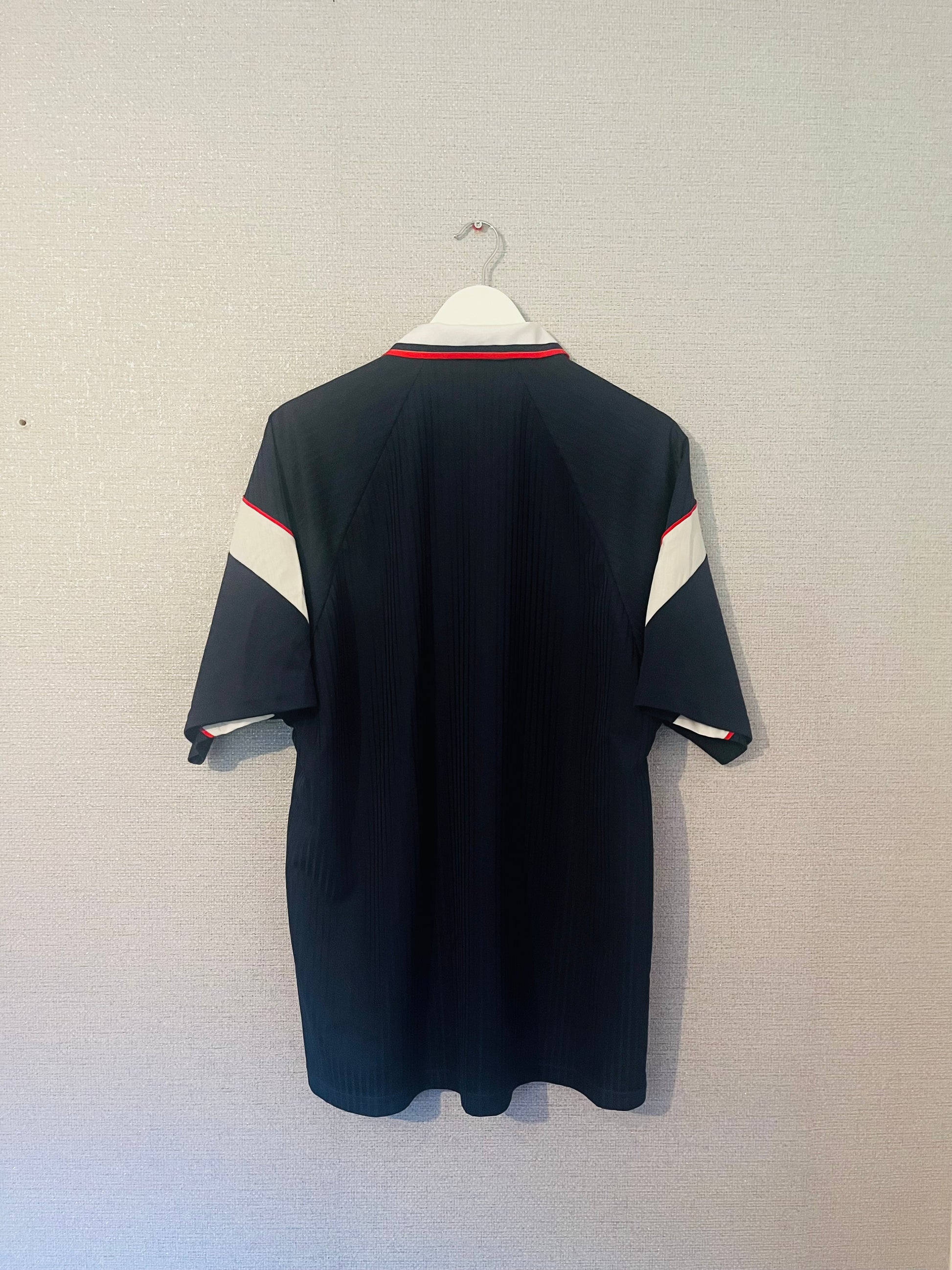 This shirt has seen some wear but is still in good condition. There may be some minor flaws such as light fading, small pulls, or faint stains, but these do not detract from the overall appearance or wearability of the shirt. A great choice for those looking to own a piece of football history at an accessible price.