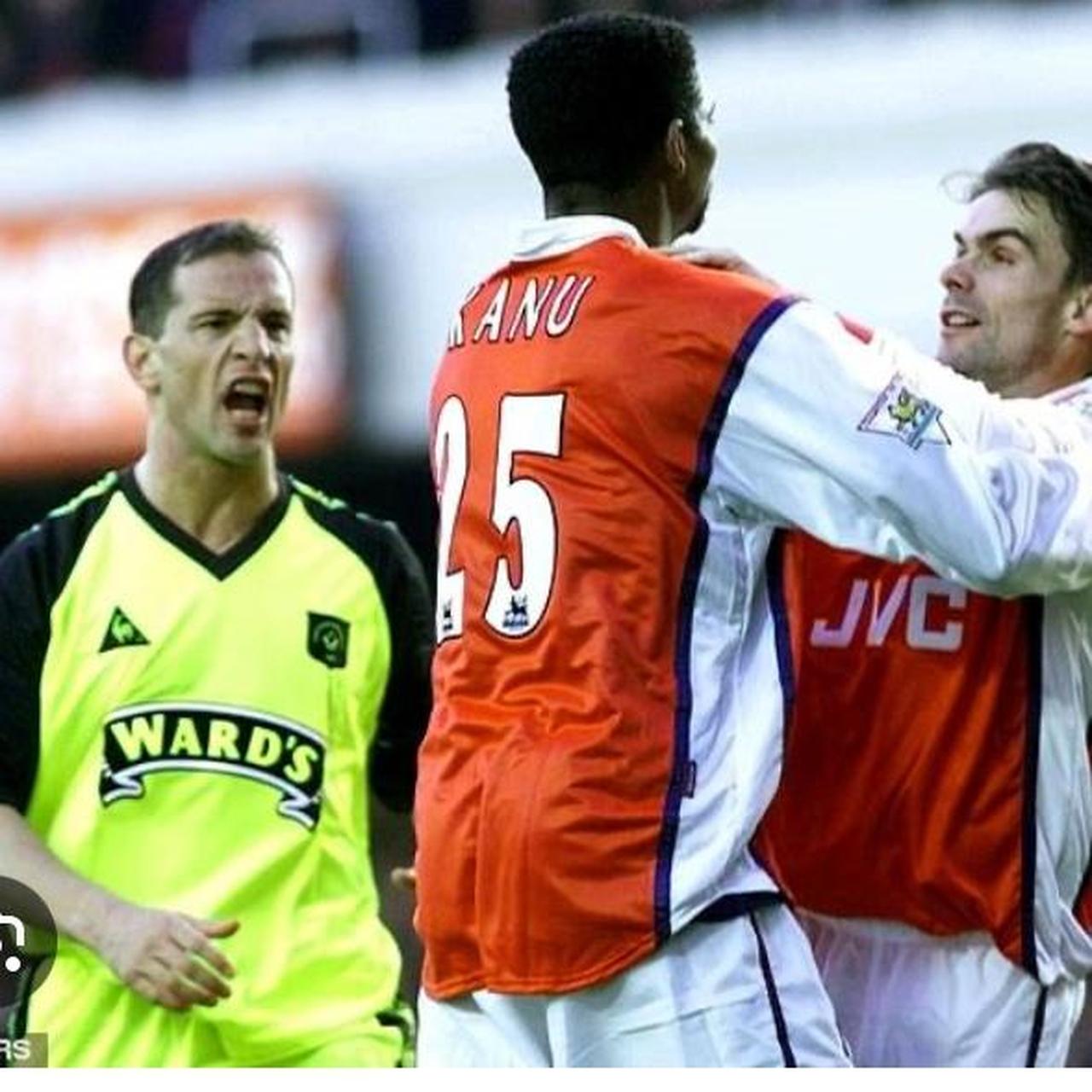 This shirt has seen some wear but is still in good condition. There may be some minor flaws such as light fading, small pulls, or faint stains, but these do not detract from the overall appearance or wearability of the shirt. A great choice for those looking to own a piece of football history at an accessible price.