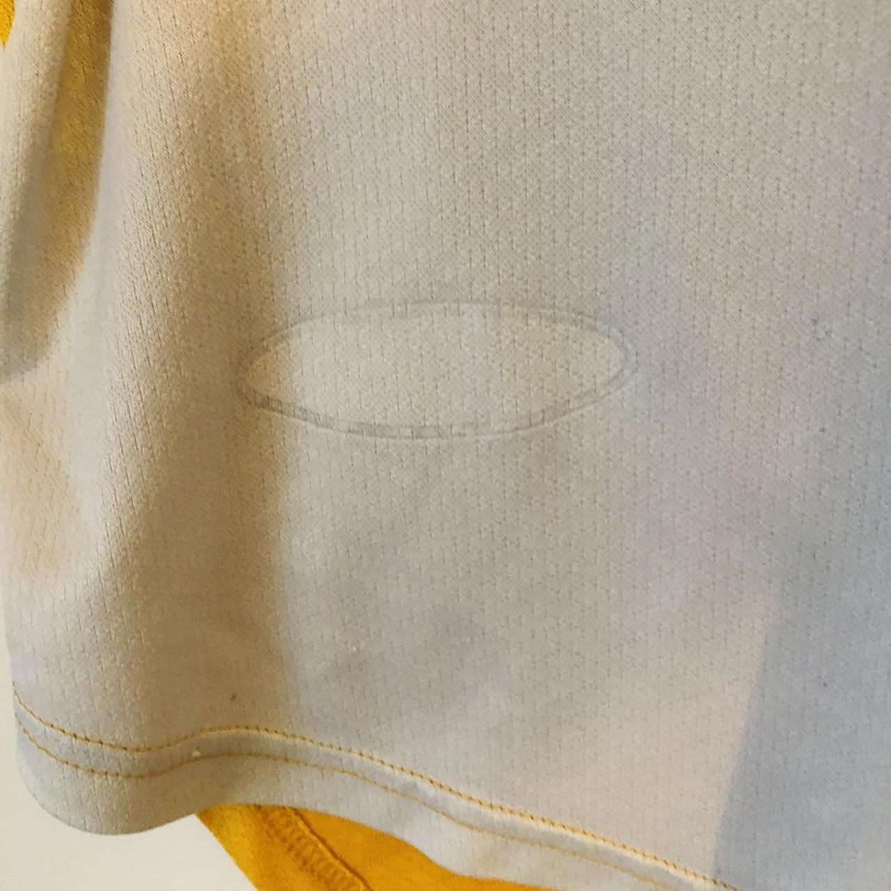 This shirt has seen some wear but is still in good condition. There may be some minor flaws such as light fading, small pulls, or faint stains, but these do not detract from the overall appearance or wearability of the shirt. A great choice for those looking to own a piece of football history at an accessible price.