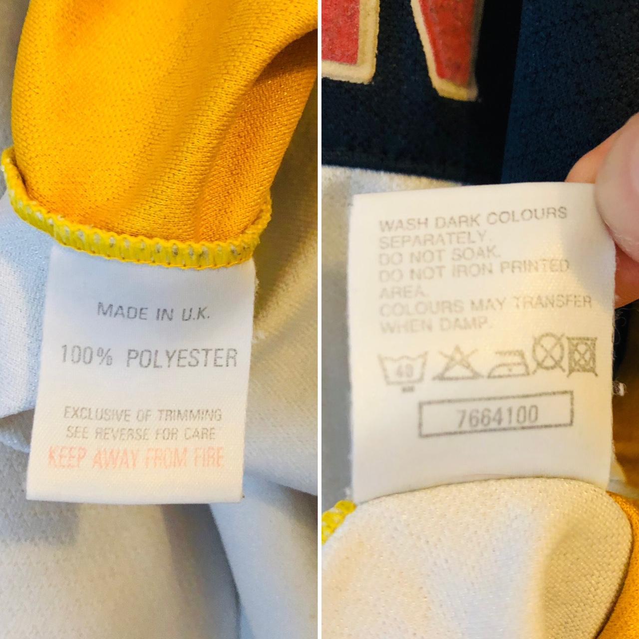 This shirt has seen some wear but is still in good condition. There may be some minor flaws such as light fading, small pulls, or faint stains, but these do not detract from the overall appearance or wearability of the shirt. A great choice for those looking to own a piece of football history at an accessible price.
