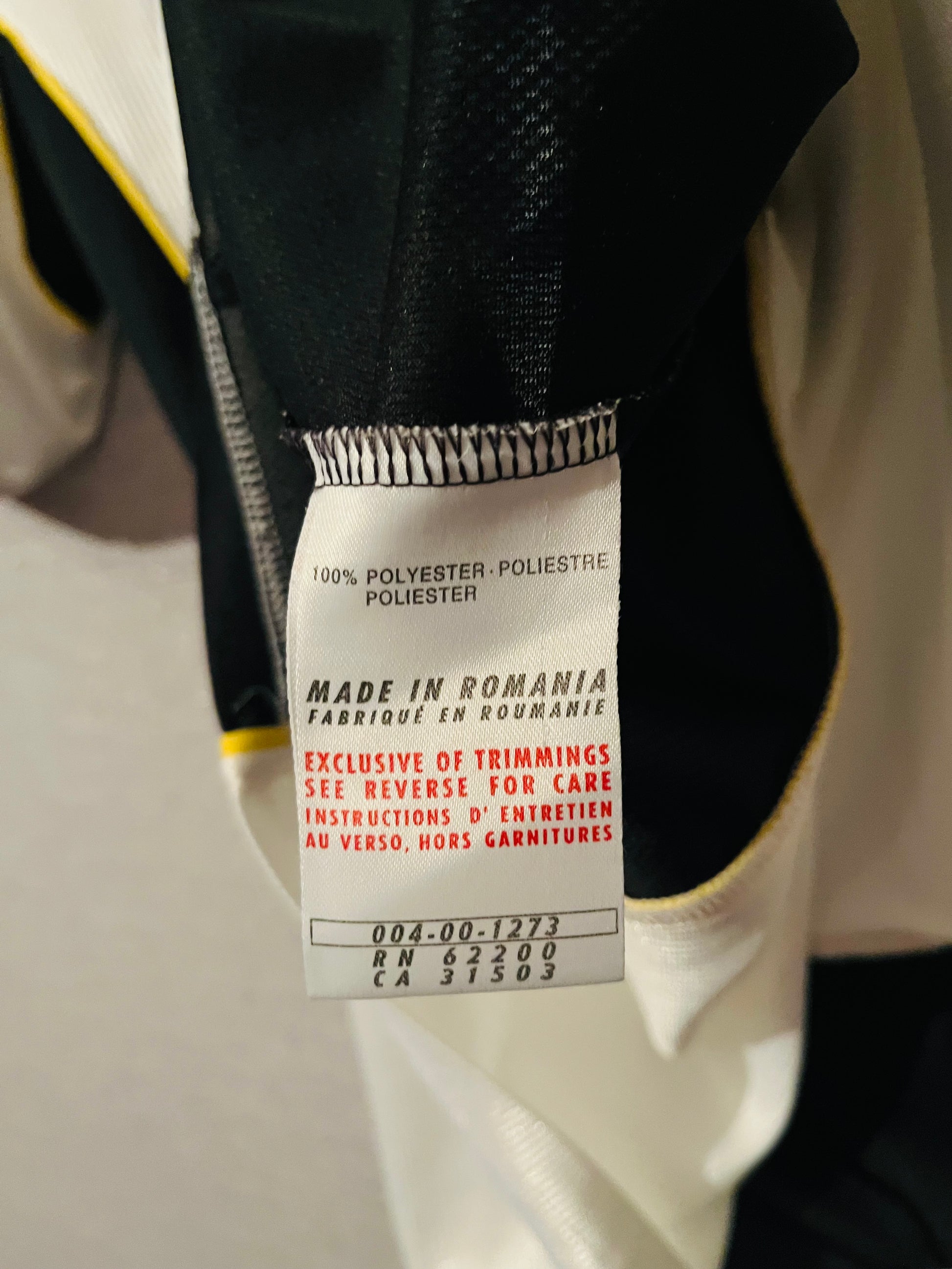 This shirt has seen some wear but is still in good condition. There may be some minor flaws such as light fading, small pulls, or faint stains, but these do not detract from the overall appearance or wearability of the shirt. A great choice for those looking to own a piece of football history at an accessible price.