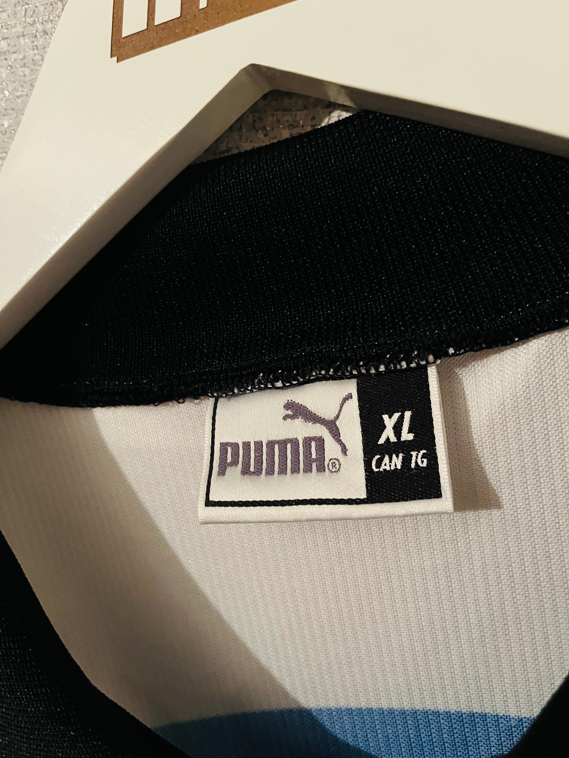 All authenticity and size labels present inside the shirt.
