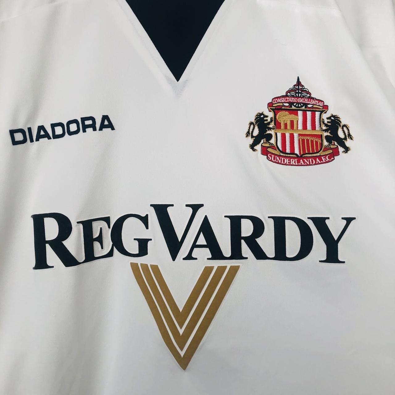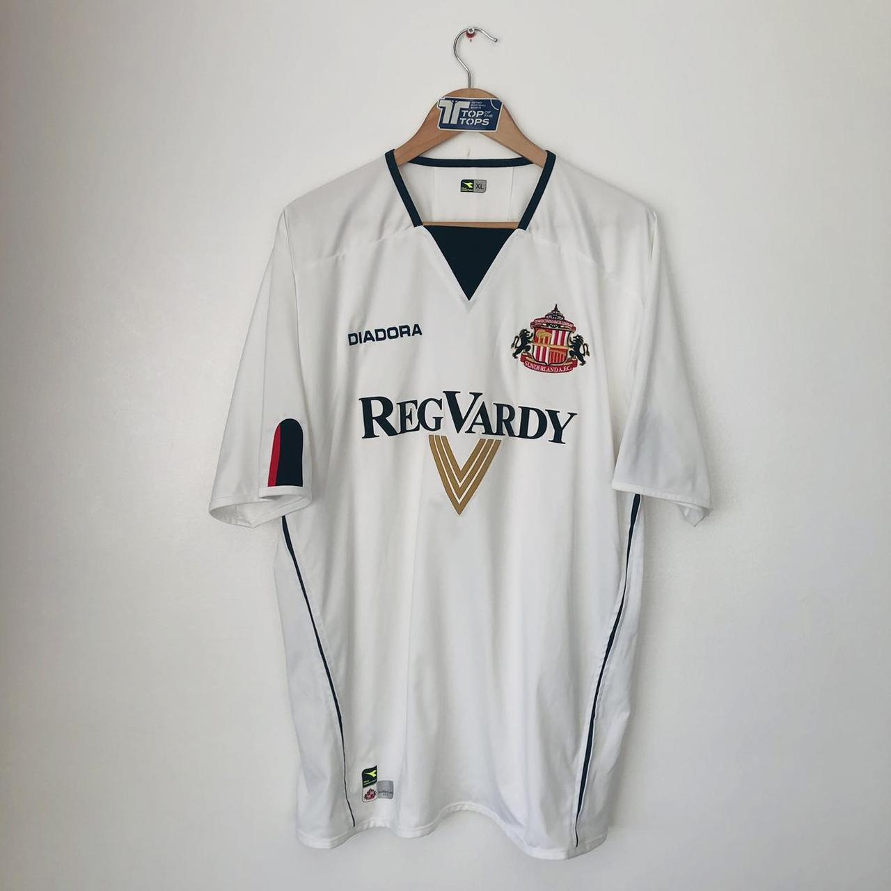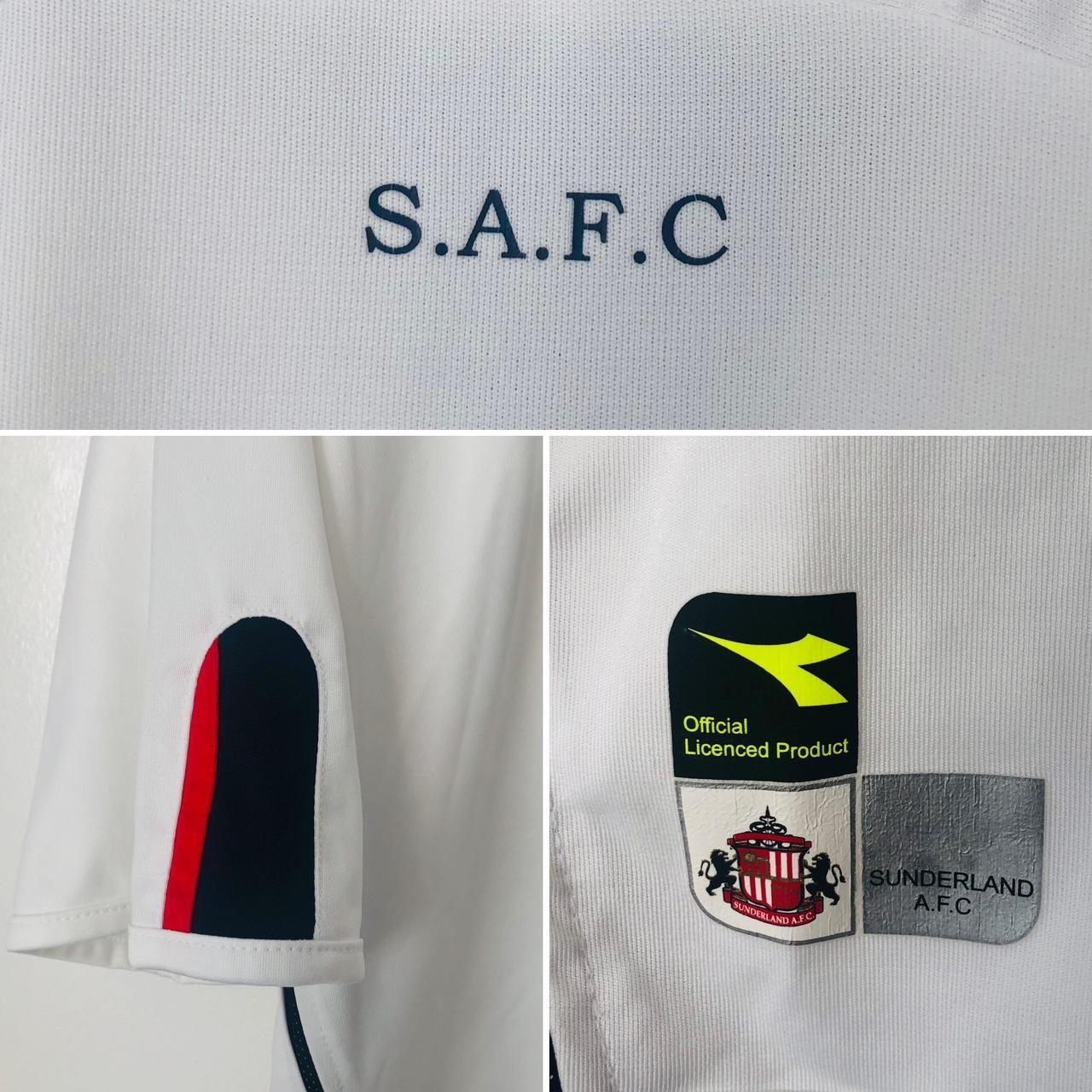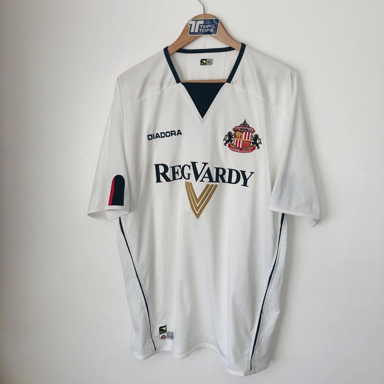 Sunderland 2004/2005 White Away Football Shirt (XL) is a good choice for football enthusiasts. It measures at a chest pit to pit of 24 inches and a length of 30 inches. Made by Diadora, this shirt is in very good condition and is part of sustainable fashion with recycled goods. Follow us on Instagram to see more of our classic football shirts at @topofthetops_uk. #classicfootballshirts #football #footballshirt #jersey #soccer