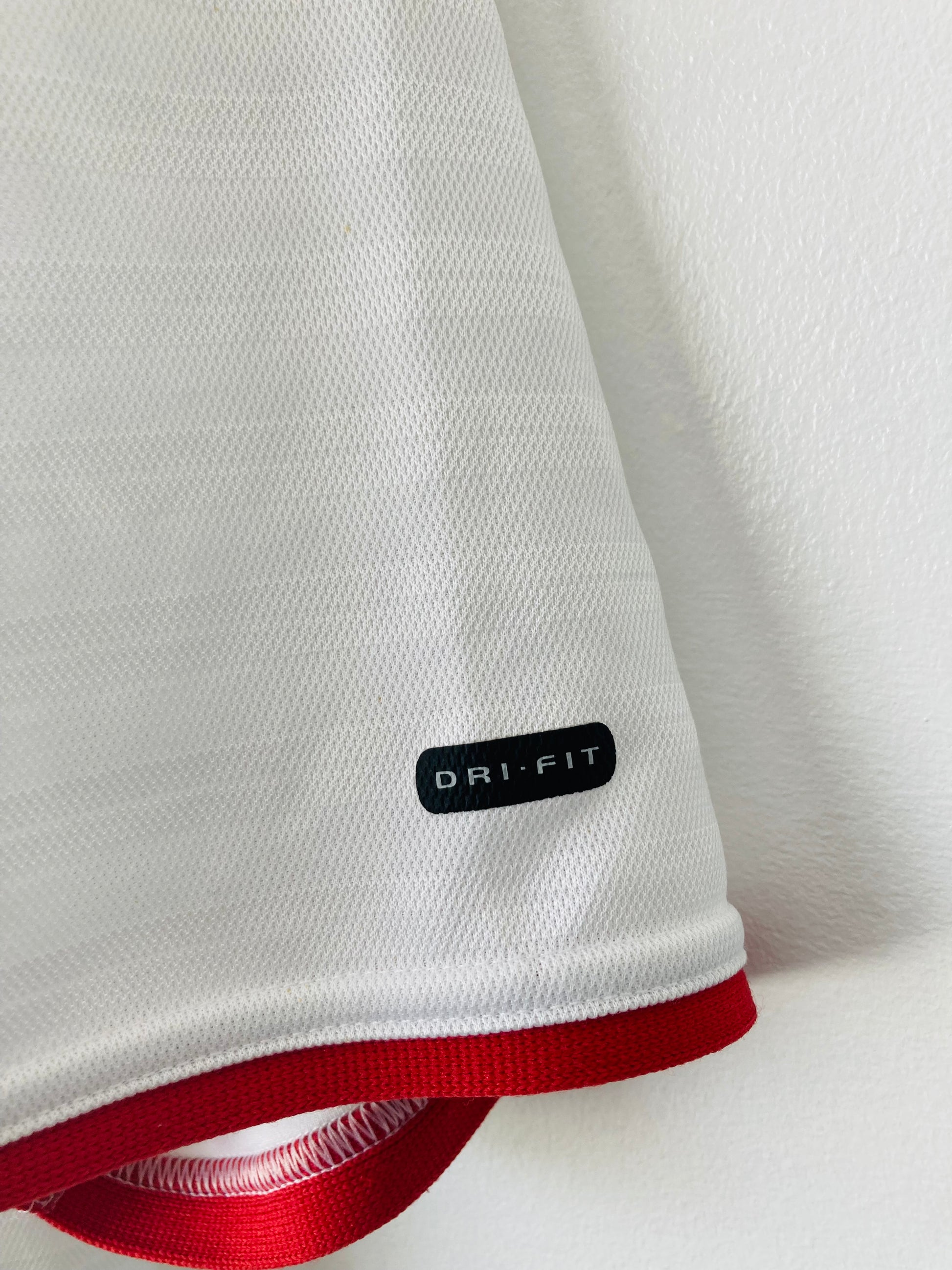 This shirt has seen some wear but is still in good condition. There may be some minor flaws such as light fading, small pulls, or faint stains, but these do not detract from the overall appearance or wearability of the shirt. A great choice for those looking to own a piece of football history at an accessible price.