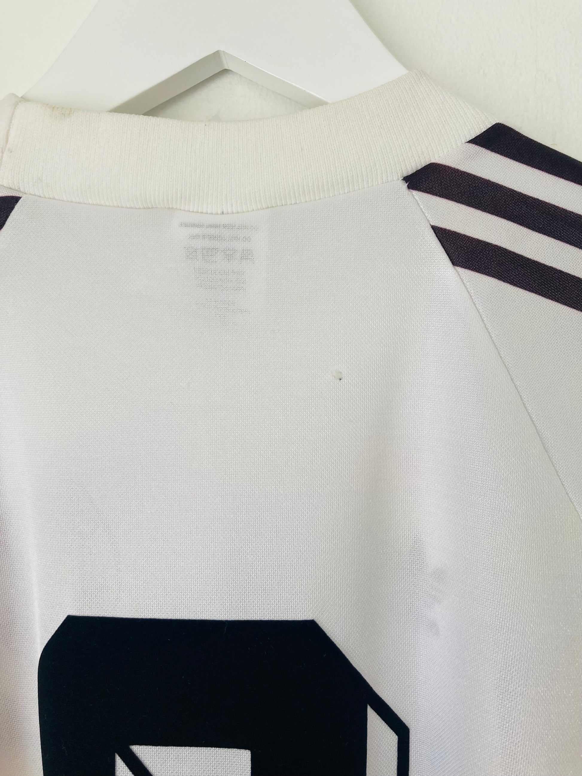 This shirt has seen some wear but is still in good condition. There may be some minor flaws such as light fading, small pulls, or faint stains, but these do not detract from the overall appearance or wearability of the shirt. A great choice for those looking to own a piece of football history at an accessible price.