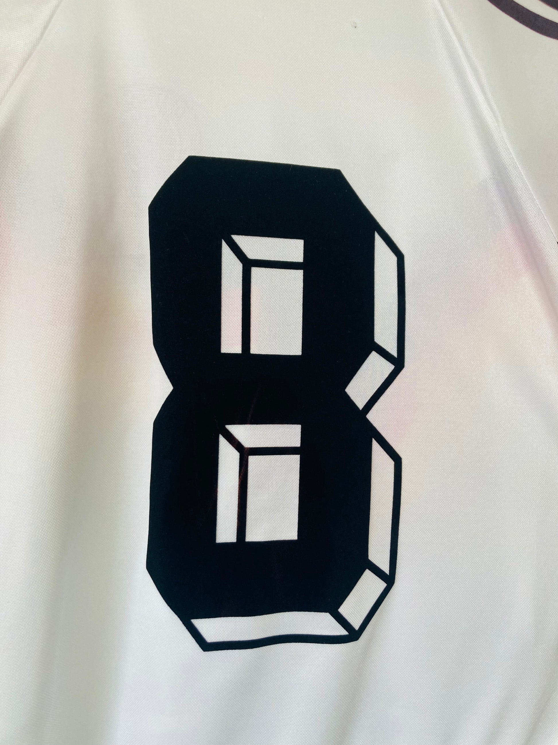This shirt has seen some wear but is still in good condition. There may be some minor flaws such as light fading, small pulls, or faint stains, but these do not detract from the overall appearance or wearability of the shirt. A great choice for those looking to own a piece of football history at an accessible price.